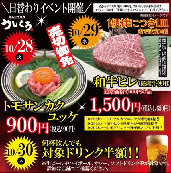 うしくろ全店舗で、恒例の肉の日!3日間の日替わりイベントを開催します!